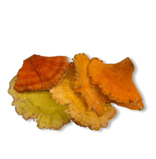 De hecho, esto no es un hongo; es un hongo parásito que crece en otros hongos como las rústulas y los hongos de leche (los “anfitriones”). El parásito da un color naranja, rojizo en el exterior, mientras que el interior consiste en una carne blanca o ligeramente amarillenta del huésped original.
