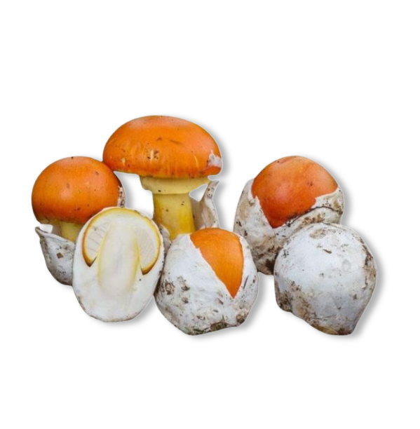El huevo del Seta de César es una hermosa bola roja con un cálido interior amarillo. Cortar por la mitad una bella imagen de un joven seta creciendo. Estos colores permanecen después de la preparación. El sabor es sin rival !!!